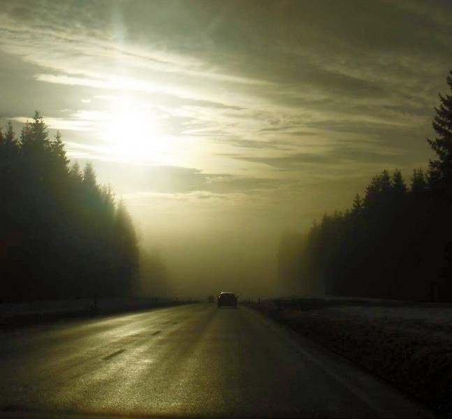 In Chemnitz wurde ein kurzer Zwischenstop eingelegt und die Ausstellungsstücke inThomas Weinbergs Wagen verladen, den er sich extra gemietet hatte. Wie fast immer istdas Erzgebirge Anfang Februar mit Schnee gesegnet, selbst eine Nebelbank sorgte kurzfür Verwirrung (O-Ton Daniel Weigel: „Wir haben hier öfter mal den „Nebel desGrauens!“)