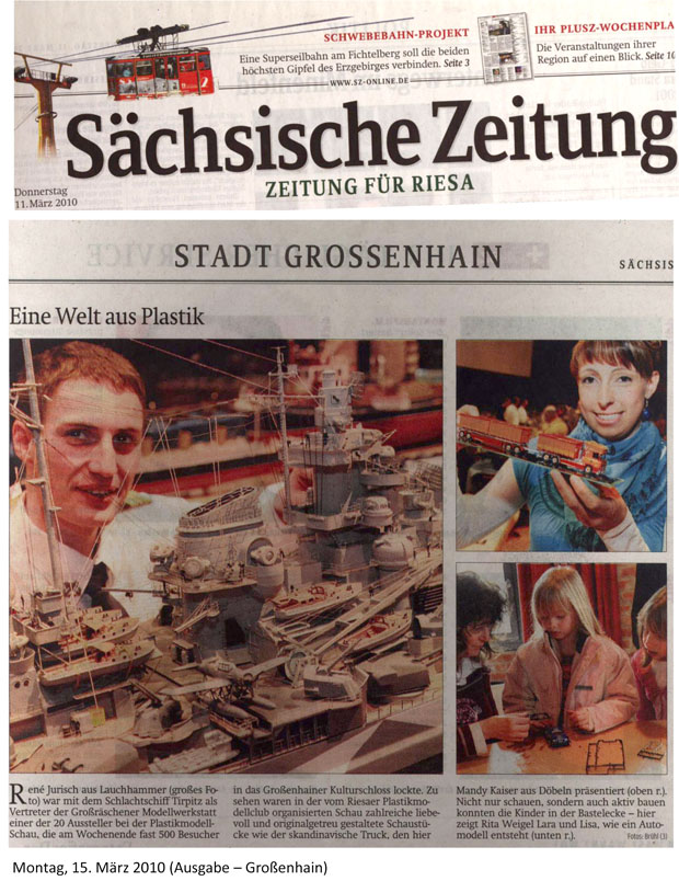 3. | Hobby und Modellwerkstatt Großräschen | Schlachtschiff "Tirpitz" | Eigenbau | 1:100 | 103 |