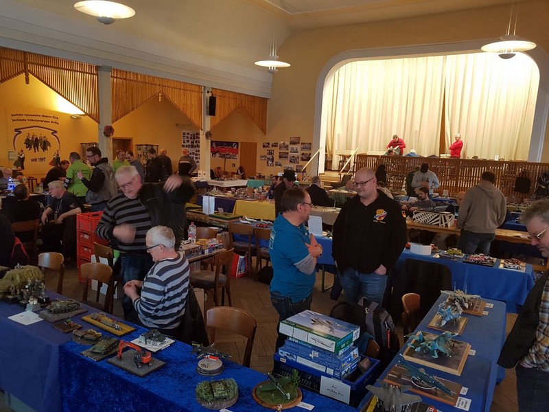 Nach der Eröffnung der Veranstaltung durch den Vorsitzenden Thomas Schäffter wurde es im Laufe des Tages die erwartete Ausstellung mit nicht übermäßig vielen Besuchern, was bei dem Wetter aber auch kein Wunder war. Trotzdem kam natürlich keine Langeweile bei uns auf. Bei dem üblichen Rundgang mit dem Fotografieren der Modelle verweilten wir auch an dem ein oder anderen Stand und reichten einen Flyer für unsere Ausstellung weiter oder gaben noch ein paar Tipps bezüglich der Anmeldung. An der Tombola gaben wir unsere „letzten“ Euros in die Hoyerswerdaer Vereinskasse und zogen auch einige Preise an Land. Nebenbei führten wir schöne Gespräche mit diversen Modellbaukollegen wie Reiner Tippmann, Thomas Schäffter oder Joachim Reinecke.