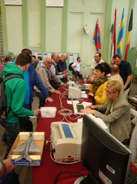 Also mussten wir erst einmal unseren Kontaktmann Peter aufsuchen, der unser "deutscher Korrespondent" sein sollte, doch das war erst einmal eine Aufgabe. Endlich gefunden, legte er sich sofort ins Zeug, zeigte uns unsere Ausstellungsfläche, klärte uns auf über allgemeine Sachen der Ausstellung, organisierte zusammen mit András Egresi (der große Organisator vor Ort) eine neue Herberge für uns und fuhr danach auch noch mit zu einer Wechselstube, damit wir Forint tauschen konnten. Also schon mal an dieser Stelle ein ganz dickes DANKE an die beiden, ohne deren Hilfe wir sicher nicht so entspannt ins Wochenende gegangen wären!!!