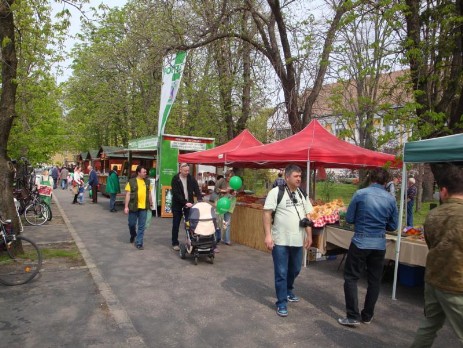 aufgebauten Ständen für das leibliche Wohl, Oldtimern, angebotenen