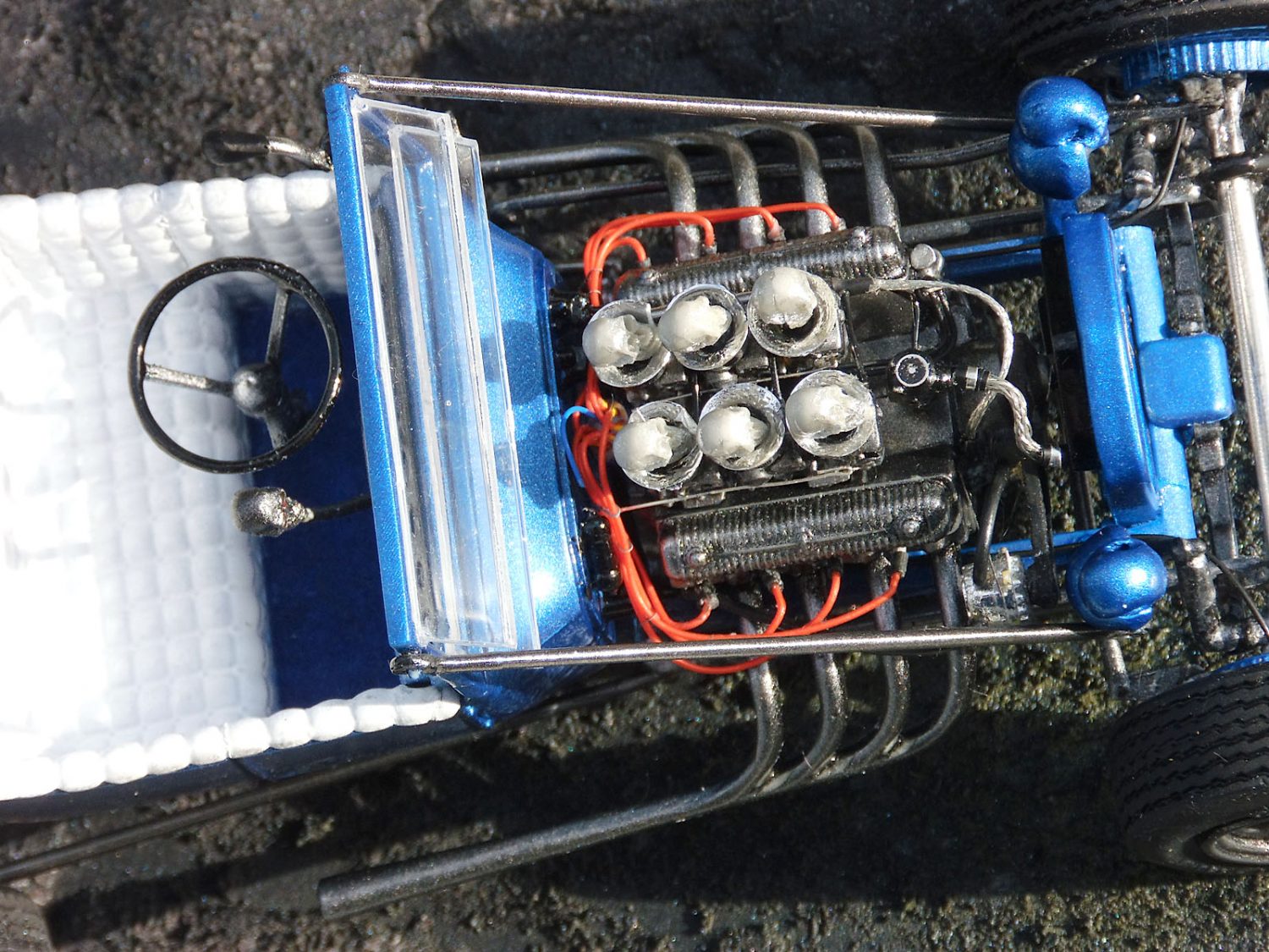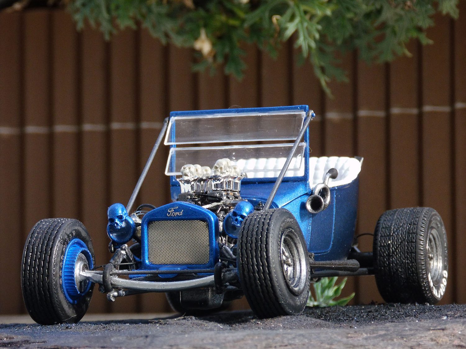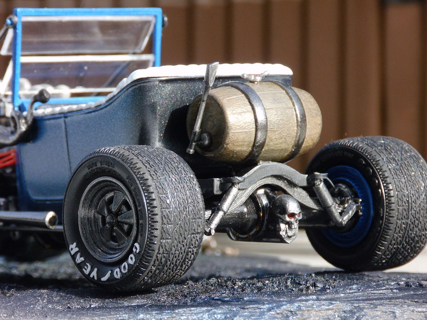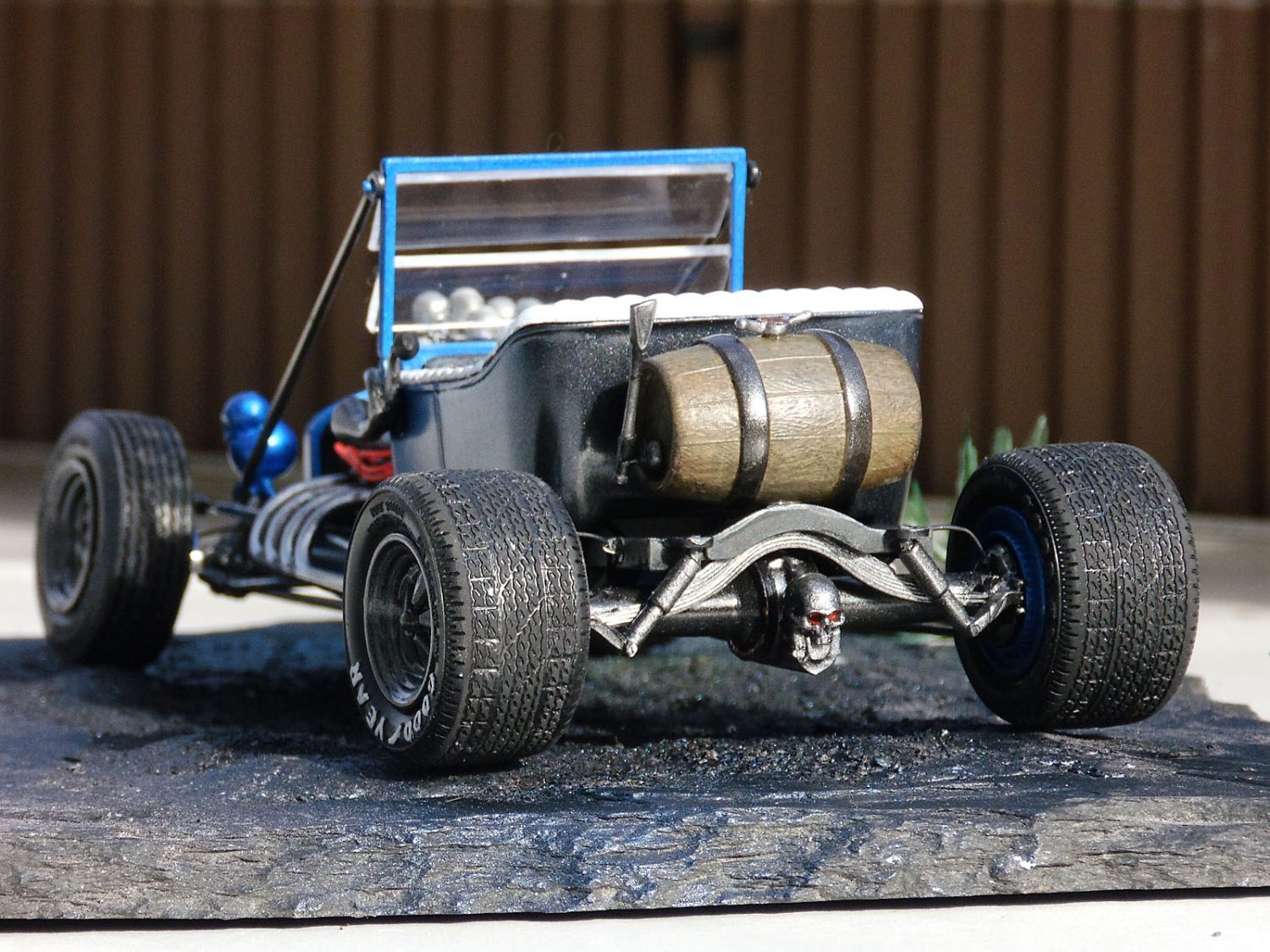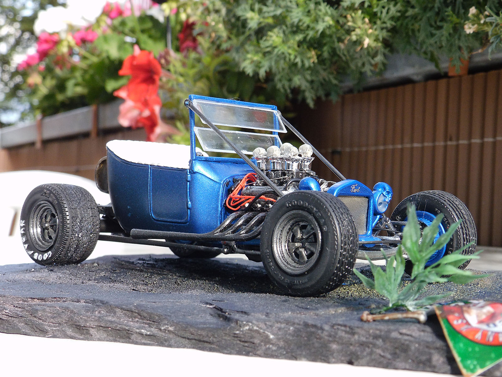 Ein heißes Gerät von AMT im Maßstab 1/25 stellte unser Ronny Oehm mit dem Ford Model T auf die Räder. Er betrieb dabei ein wenig Customizing und verwendete Ätzteile von Model Car Garage sowie Mr. Model. Der Zündverteiler stammt von Detail Master, die Zündkerzen von MBM und die Schädel von Drakkar-Models.