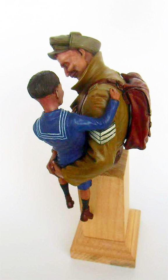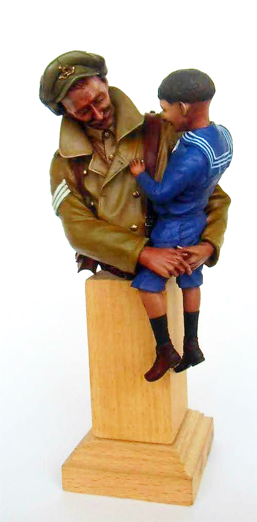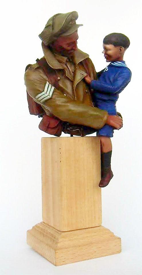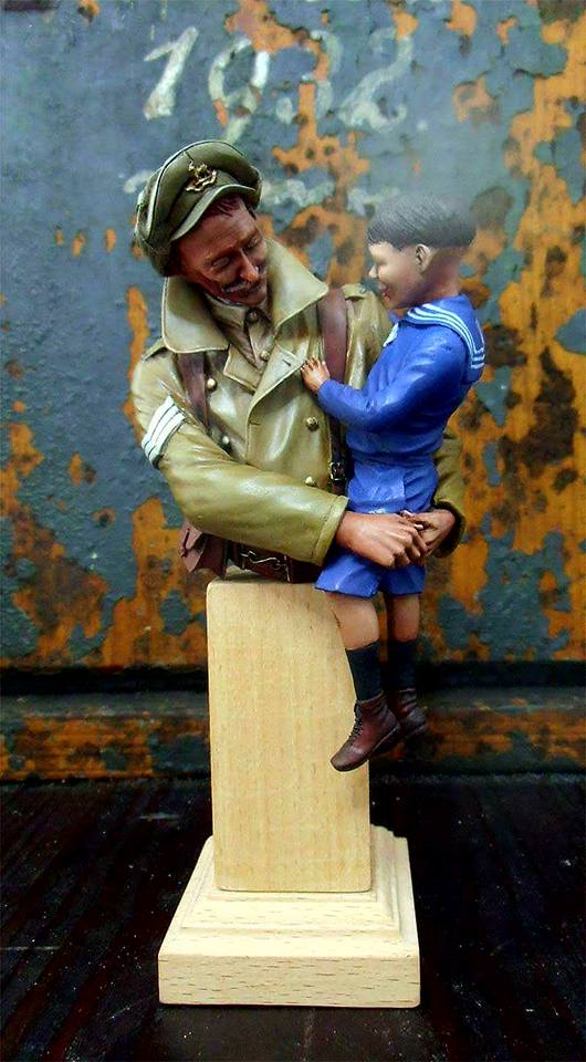 Die Büste des britischen Soldaten aus Zeiten des 1. Weltkriegs mit seinem Sohn stammt aus den kundigen Händen unseres Lucas Neubert. Den „Resinklotz“ im Maßstab 1/10 von MJ Miniatures gestaltete Lucas hauptsächlich mit Acrylfarben von Vallejo.