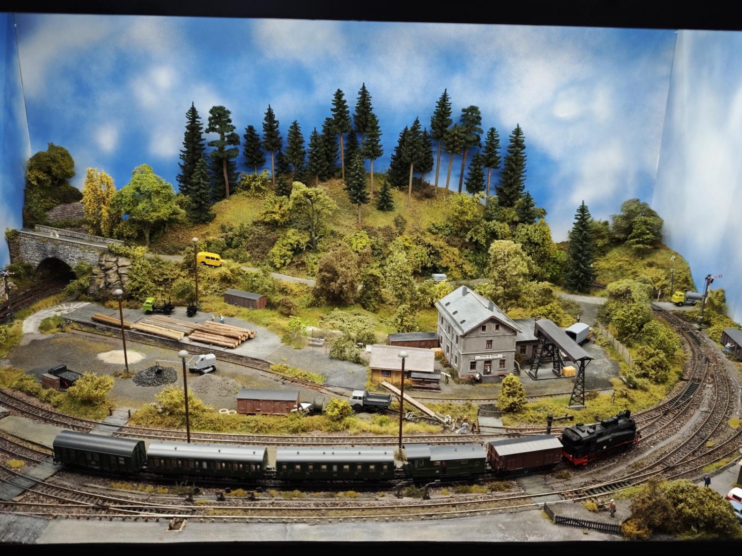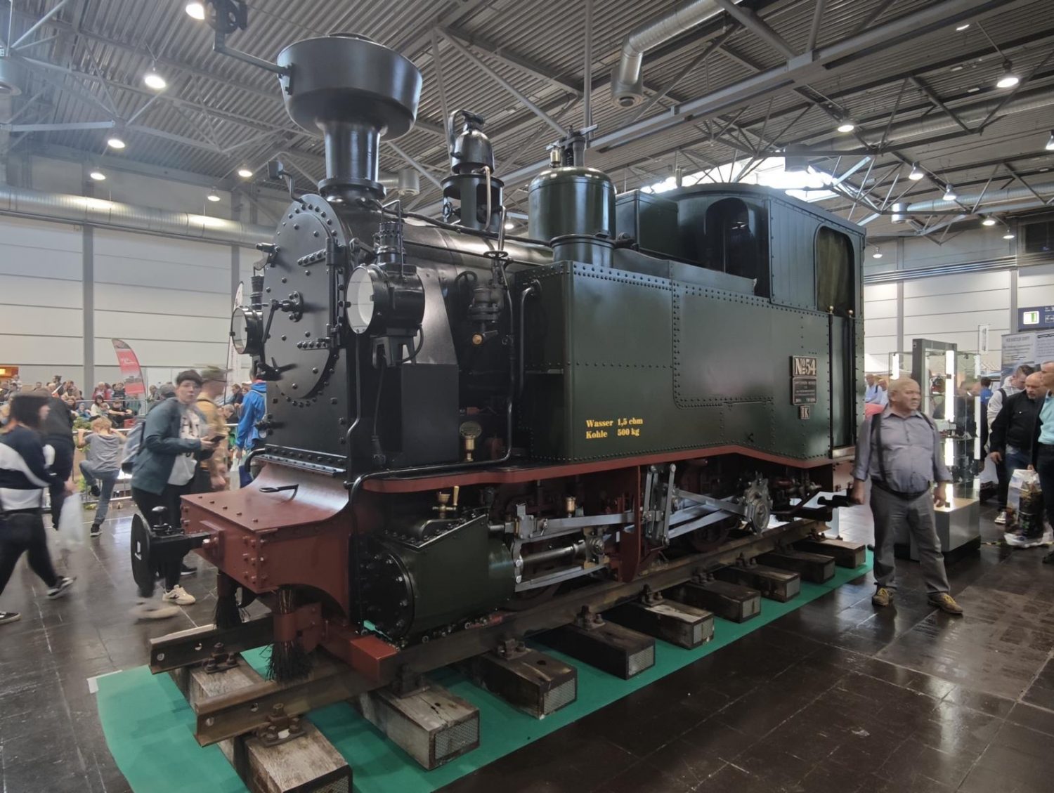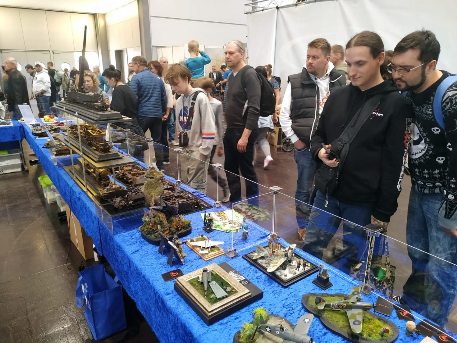 Kurz vor zehn wurde das Licht hochgefahren und die liebliche Stimme aus dem Lautsprecher verkündete das Öffnen der Türen und begrüßte die ersten Besucher. Das da wohl dank dem Feiertag einiges an Leuten unterwegs war, merkten wir dann etwas später auch. Wir hatten erst die Befürchtung, dass die Lage am Rand der Halle für weniger Besucher sorgen könnte, aber das eigentliche Gegenteil war der Fall, denn wir konnten reichlich bewundernde Blicke über unsere Tische sehen und auch einige interessante Gespräche kamen zustande. Dieses Jahr war unser Klaus mit seinen Eisenbahngeschützen der Magnet. Er ist ja erst seit diesem Jahr bei uns im Verein, aber man kann schon sehen, dass er bereits gute Fortschritte durch Tipps und Tricks von den Kollegen innerhalb dieser Zeit gemacht hat. Hut ab und weiter so!