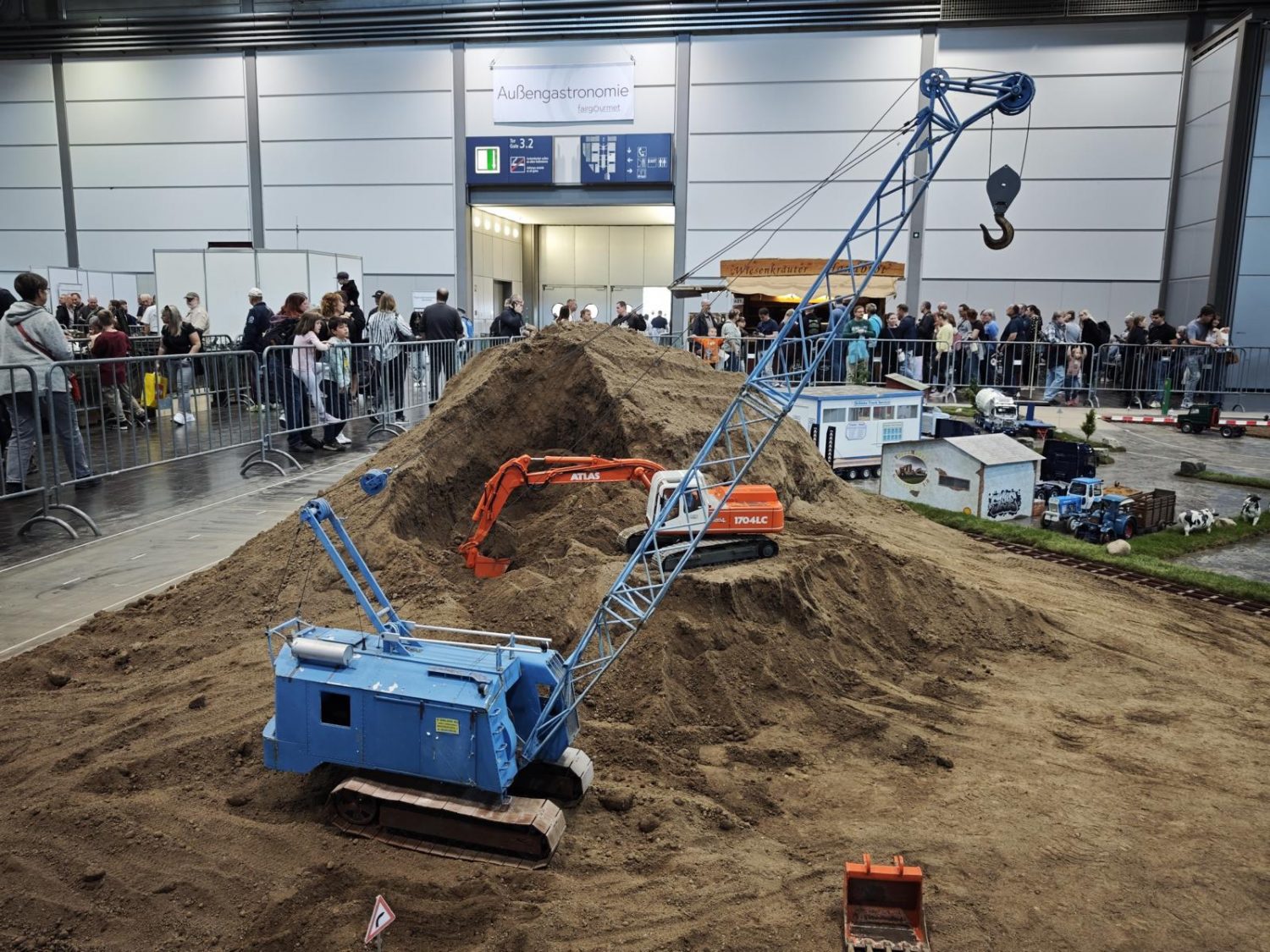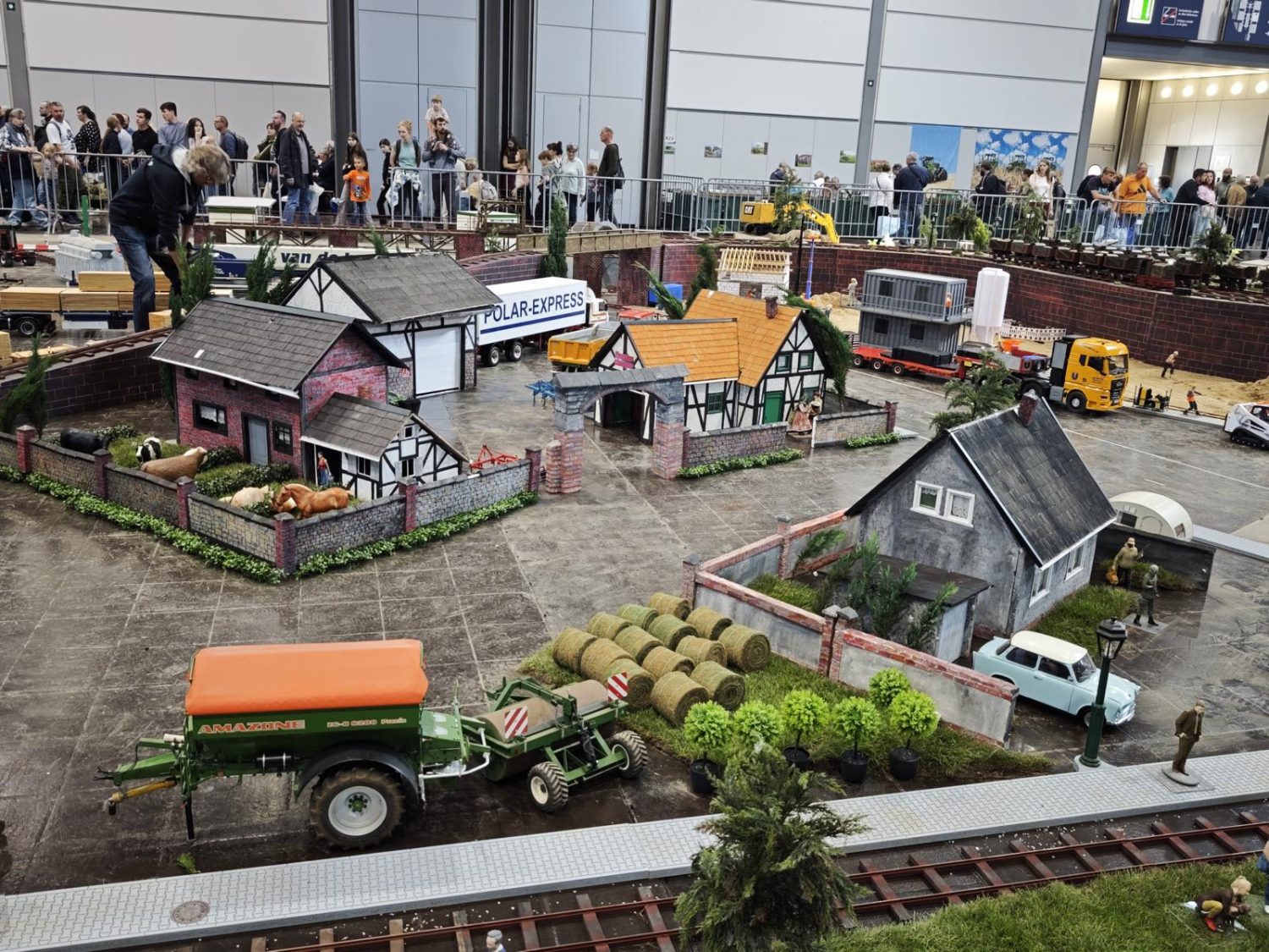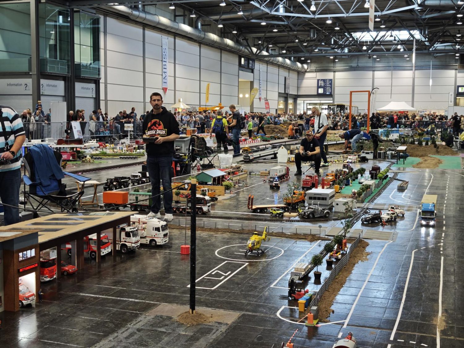 Bis zum Mittag wollte der Strom der Besucher auch nicht abreißen und so erreichten uns die ersten Warnungen ja nicht in Halle 3 zu gehen, es wäre kein Durchkommen. Wir unternahmen mit Mario zusammen trotzdem dieses Wagnis und fanden es nicht schlimmer als in den Vorjahren. Ebenfalls trafen wir auf eine altbewährte Aufstellung des Ganzen, also eine gute Mischung aus Herstellern, Händlern und Vereinen aus dem Modellbahnsektor, ebenso wie aus dem Bereich der RC-Fahrzeuge mit entsprechend abgesteckten Geländen für die Vorführung der ganzen Funktionsmodelle. Dabei zeigte sich für mich einmal mehr, dass die klassische „Eisenbahnplatte“ für mich nach wie vor stimmiger ist als eine Modulbauweise, wahrscheinlich weil sie mehr Dioramacharakter aufweist. Zumindest fand ich bei diesen Anlagen meine Fotomotive.