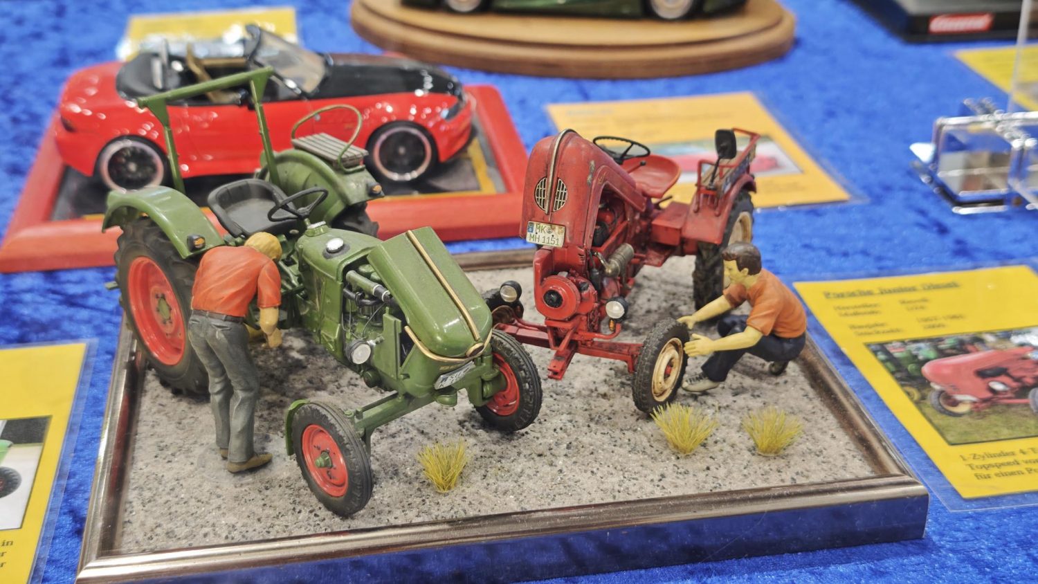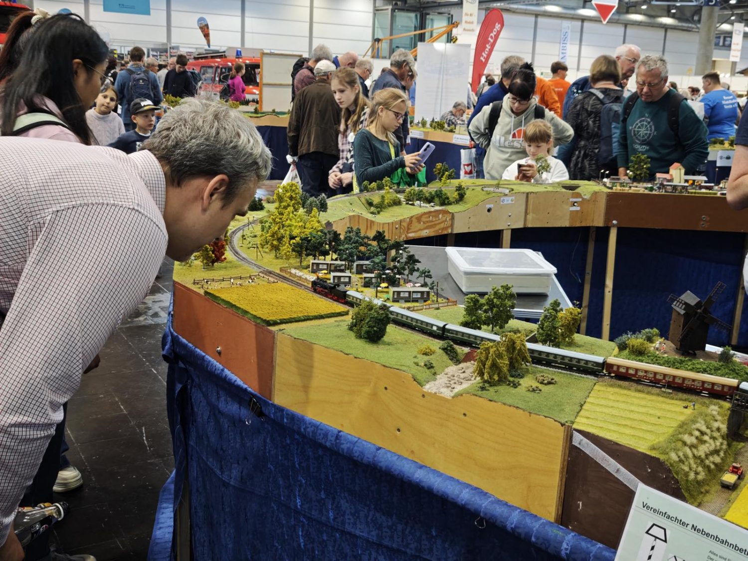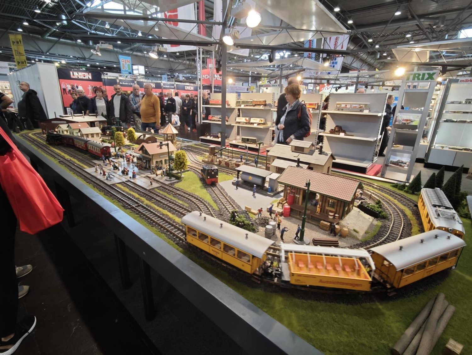 Bis zum Mittag wollte der Strom der Besucher auch nicht abreißen und so erreichten uns die ersten Warnungen ja nicht in Halle 3 zu gehen, es wäre kein Durchkommen. Wir unternahmen mit Mario zusammen trotzdem dieses Wagnis und fanden es nicht schlimmer als in den Vorjahren. Ebenfalls trafen wir auf eine altbewährte Aufstellung des Ganzen, also eine gute Mischung aus Herstellern, Händlern und Vereinen aus dem Modellbahnsektor, ebenso wie aus dem Bereich der RC-Fahrzeuge mit entsprechend abgesteckten Geländen für die Vorführung der ganzen Funktionsmodelle. Dabei zeigte sich für mich einmal mehr, dass die klassische „Eisenbahnplatte“ für mich nach wie vor stimmiger ist als eine Modulbauweise, wahrscheinlich weil sie mehr Dioramacharakter aufweist. Zumindest fand ich bei diesen Anlagen meine Fotomotive.