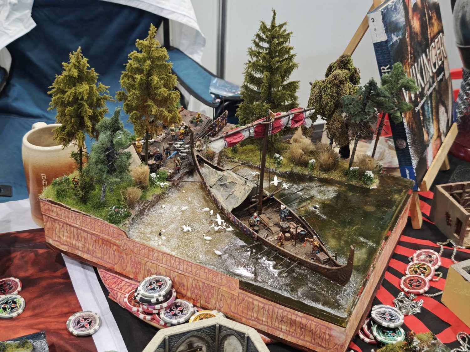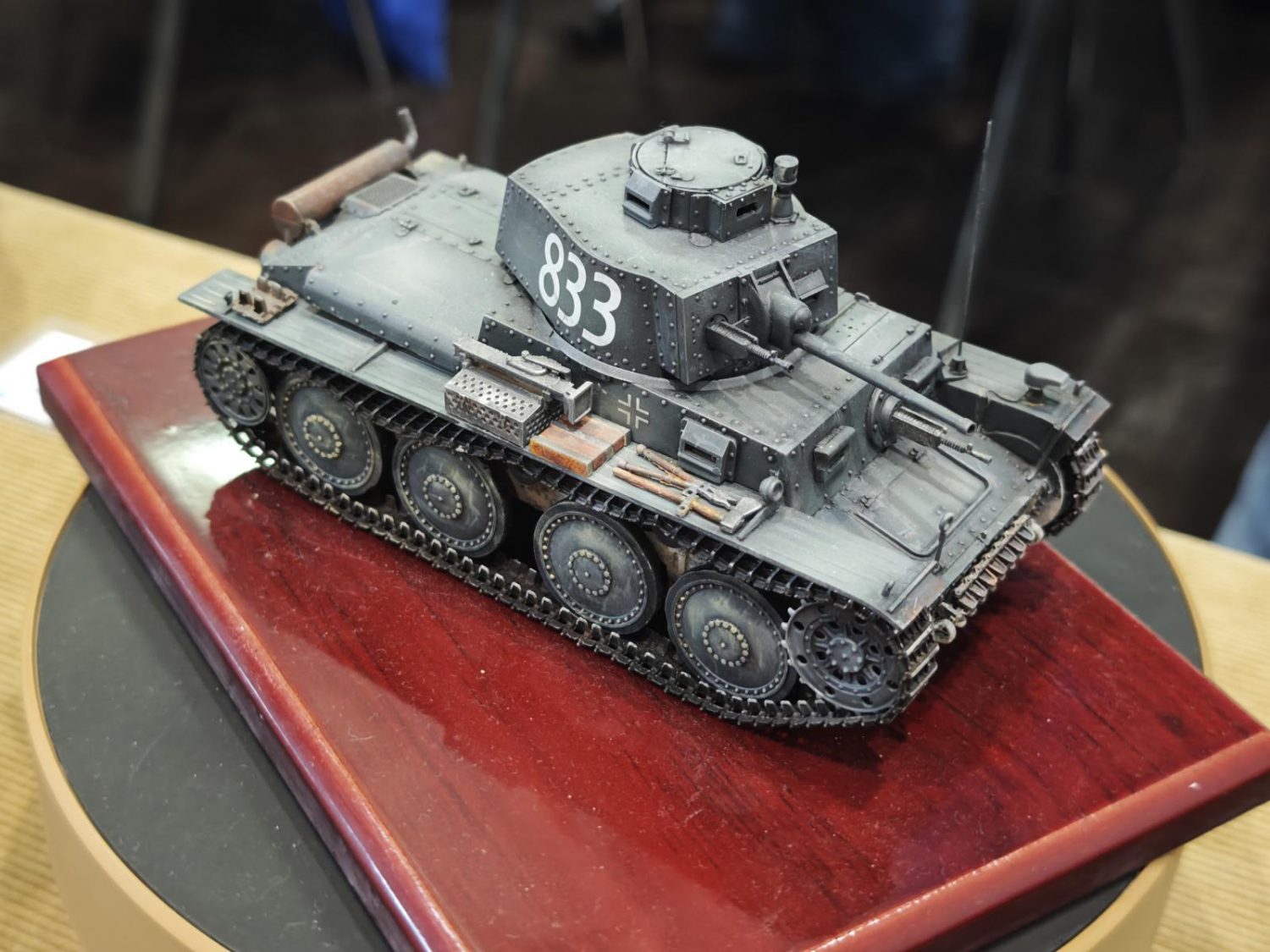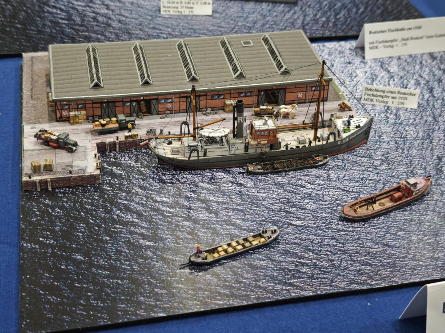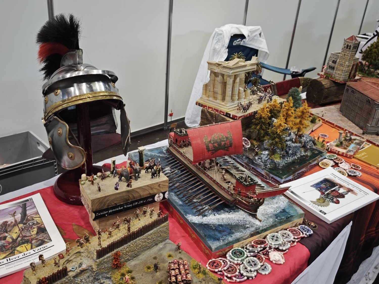 Zurück in Halle 5 unternahmen wir selbstredend auch noch den Rundgang durch unser eigentliches Interessensgebiet, den Plastikmodellbau. Dieser paarte sich hier mit RC-Fliegern und RC-Schiffen, aber auch die Kollegen vom Kartonmodellbau hatten einiges zu zeigen.