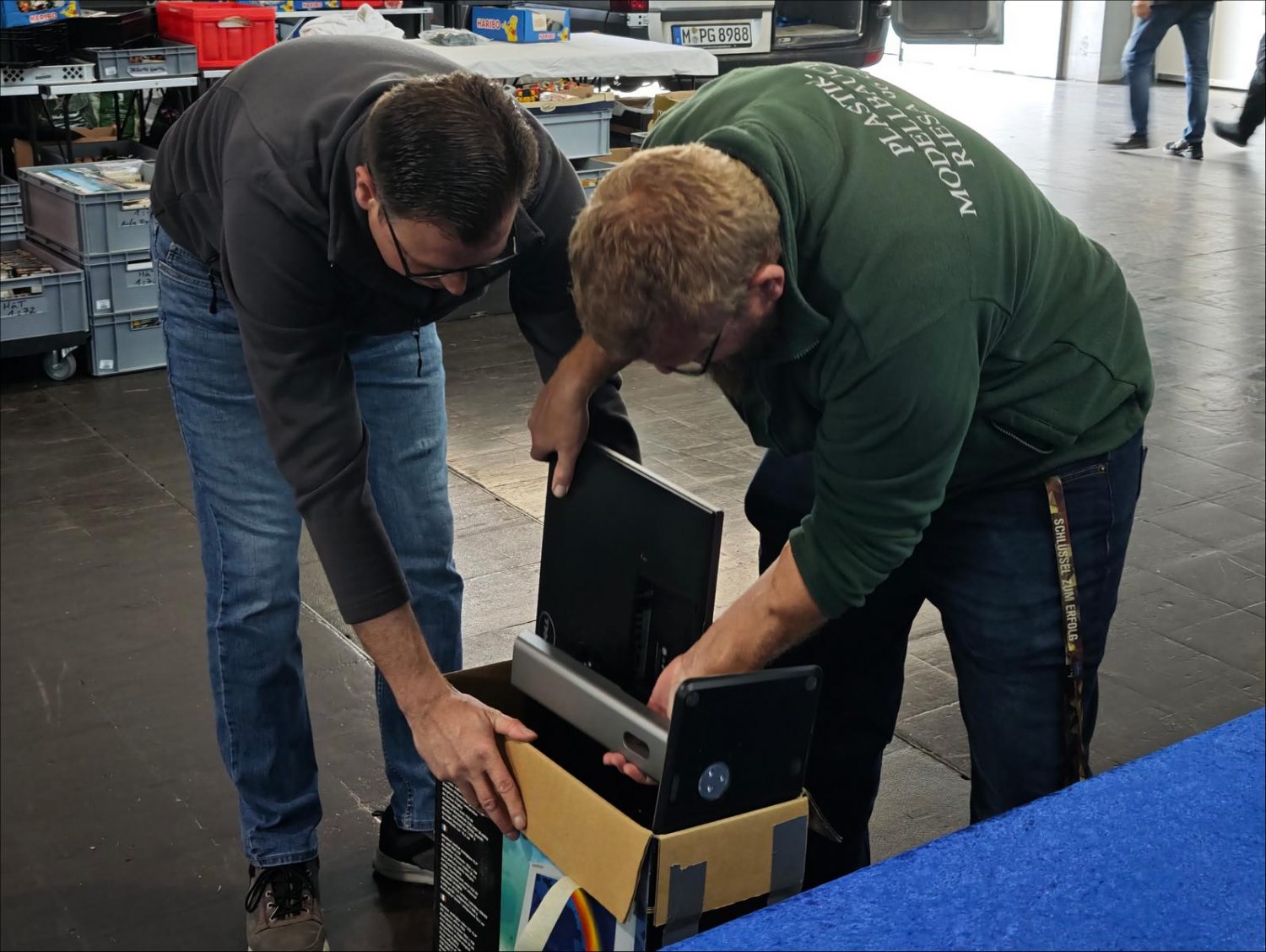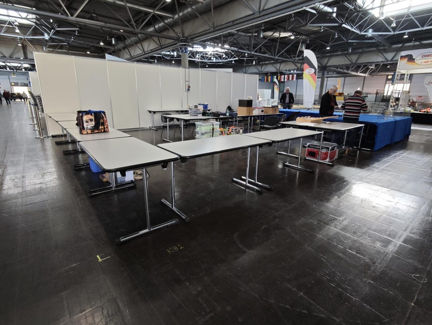 Den Freitag ließen wir dann erstmal in aller Ruhe mit den Vereinskollegen in gedämmten Licht und geschlossenen Hallen beim Frühstück mit Brötchen, Cappuccino, Kuchen und den ersten Gesprächen anlaufen. Den ersten Bausatz ließ man sich ebenfalls bereits vor der offiziellen Eröffnung zurücklegen, was selbstverständlich für Lacher sorgte.