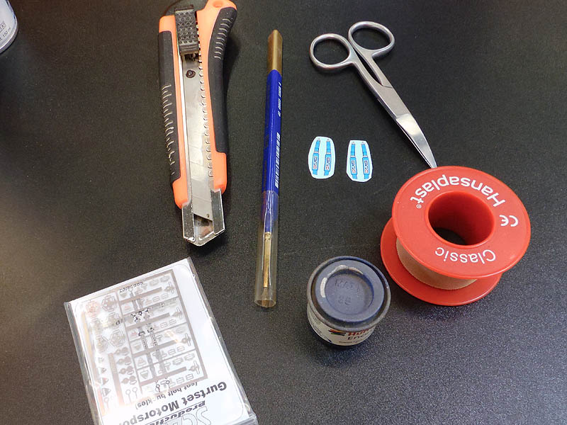 Üblicherweise befinden sich Gurte als Decal in einem Bausatz. Da Gurte nun aber eigentlich dreidimensional sind, gibt es natürlich auch hier einen einfachen und doch noch kostengünstigen Weg Gurte selbst zu bauen. Es ist zwar im Zubehör schon farbiges Gurtmaterial erhältlich, aber mir persönlich glänzt es zu stark, ist etwas zu breit und außerdem recht störrisch.