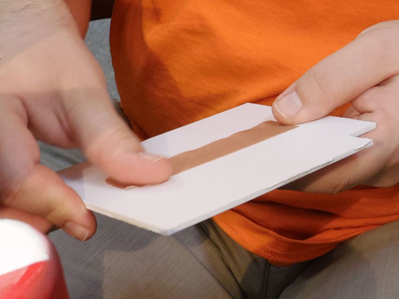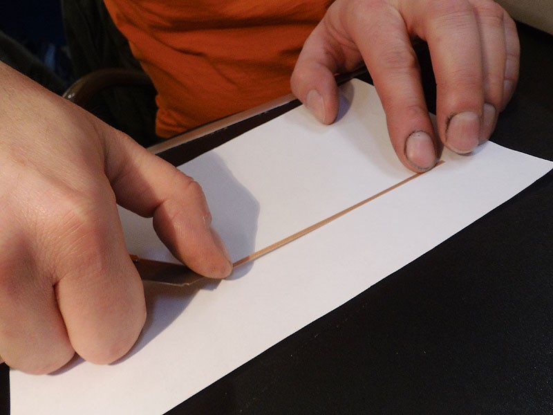 Als Erstes werden die Materialien bereitgelegt und ein genügend langes Stück handelsübliches Pflaster abgetrennt und auf einen festen Untergrund geklebt.