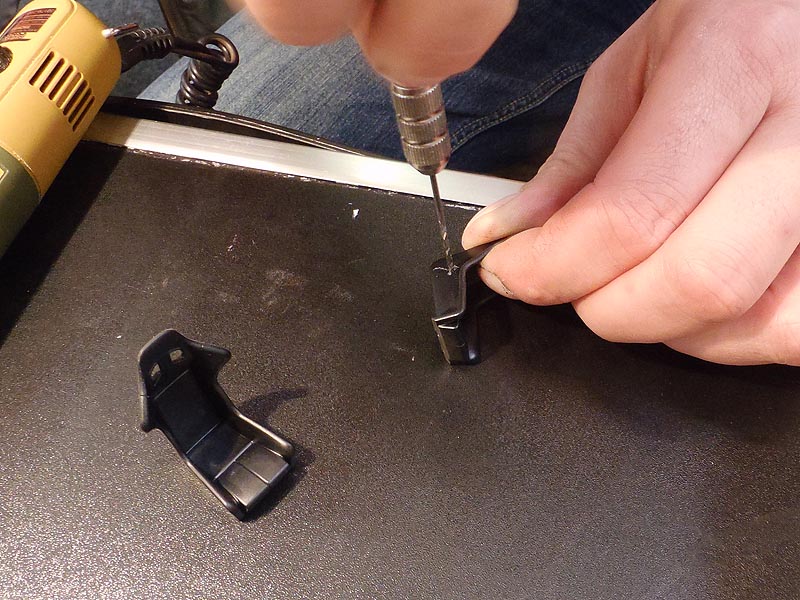 Als Erstes werden die seitlichen Gurtdurchführungen aufgebohrt und ausgefräst um später einmal einen selbstgebauten Gurt zu verbauen.