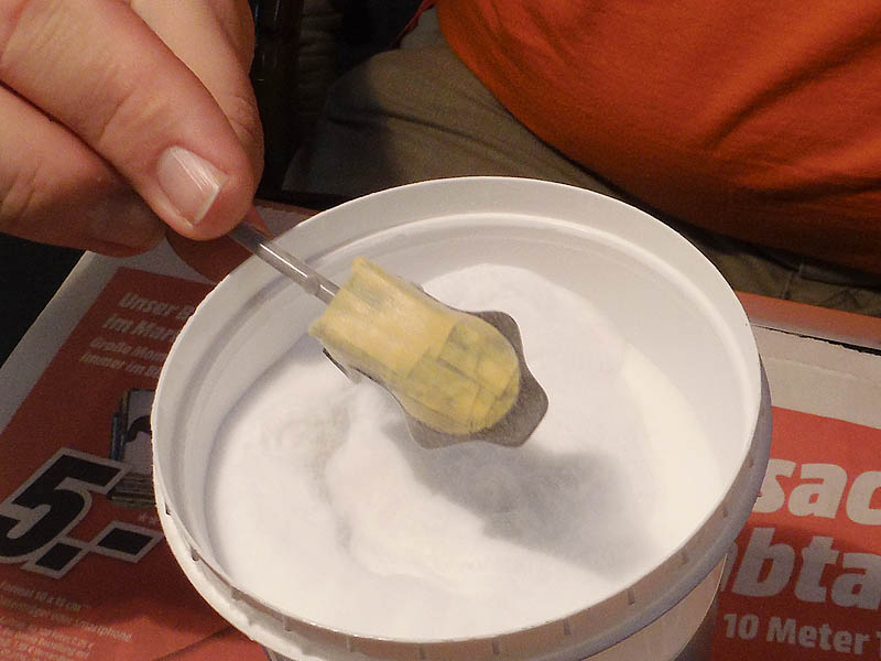 Der Laie nimmt dazu gerne Mehl. Das ist aber sehr anfällig in punkto verklumpen. Daher nehmen wir hier ein Produkt von Toolcraft, was sich „Micro Ballons“ nennt und eigentlich zum Anrühren von Spachtelmassen gedacht ist, aber für unseren Zweck ist es ebenfalls sehr gut geeignet.