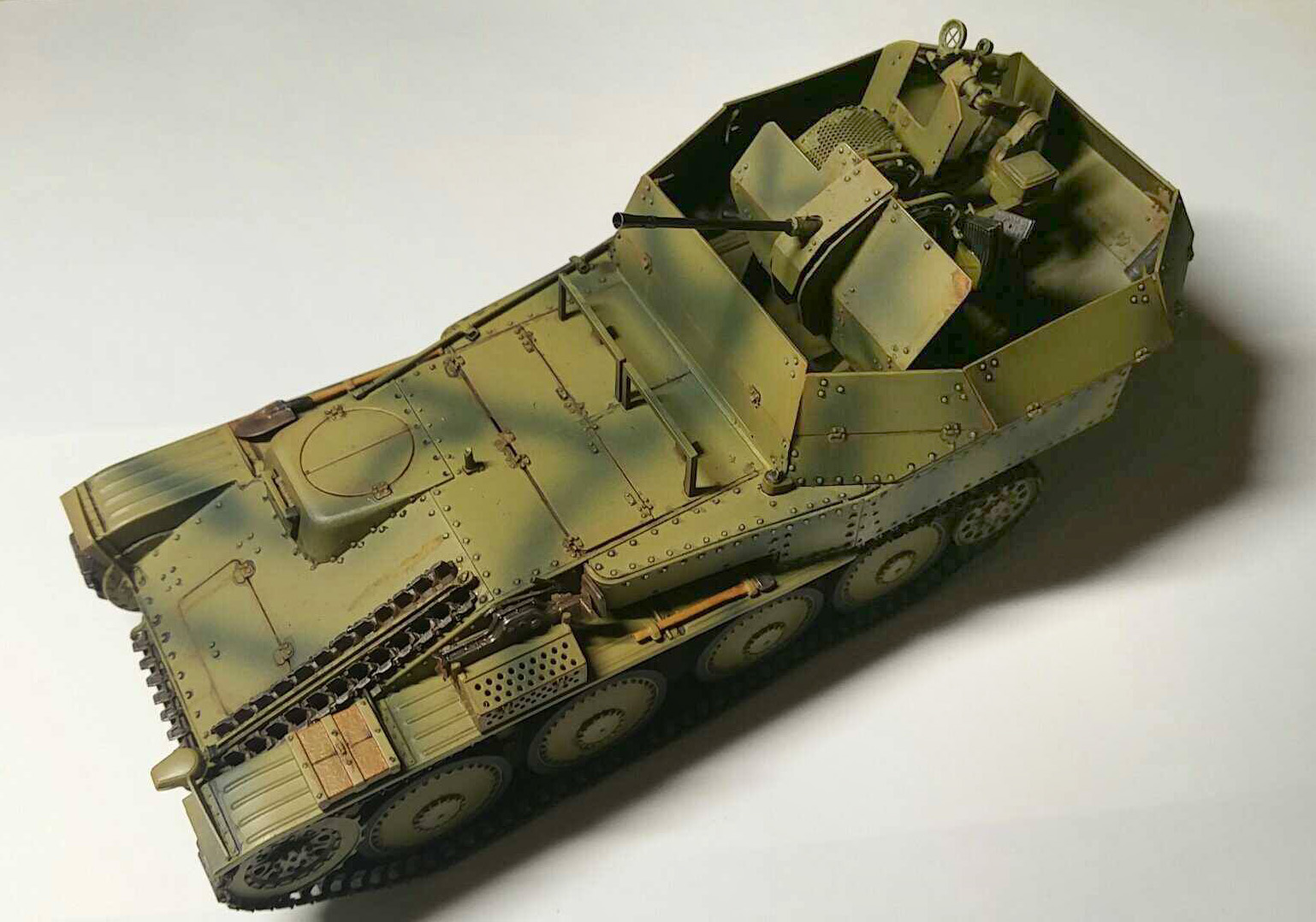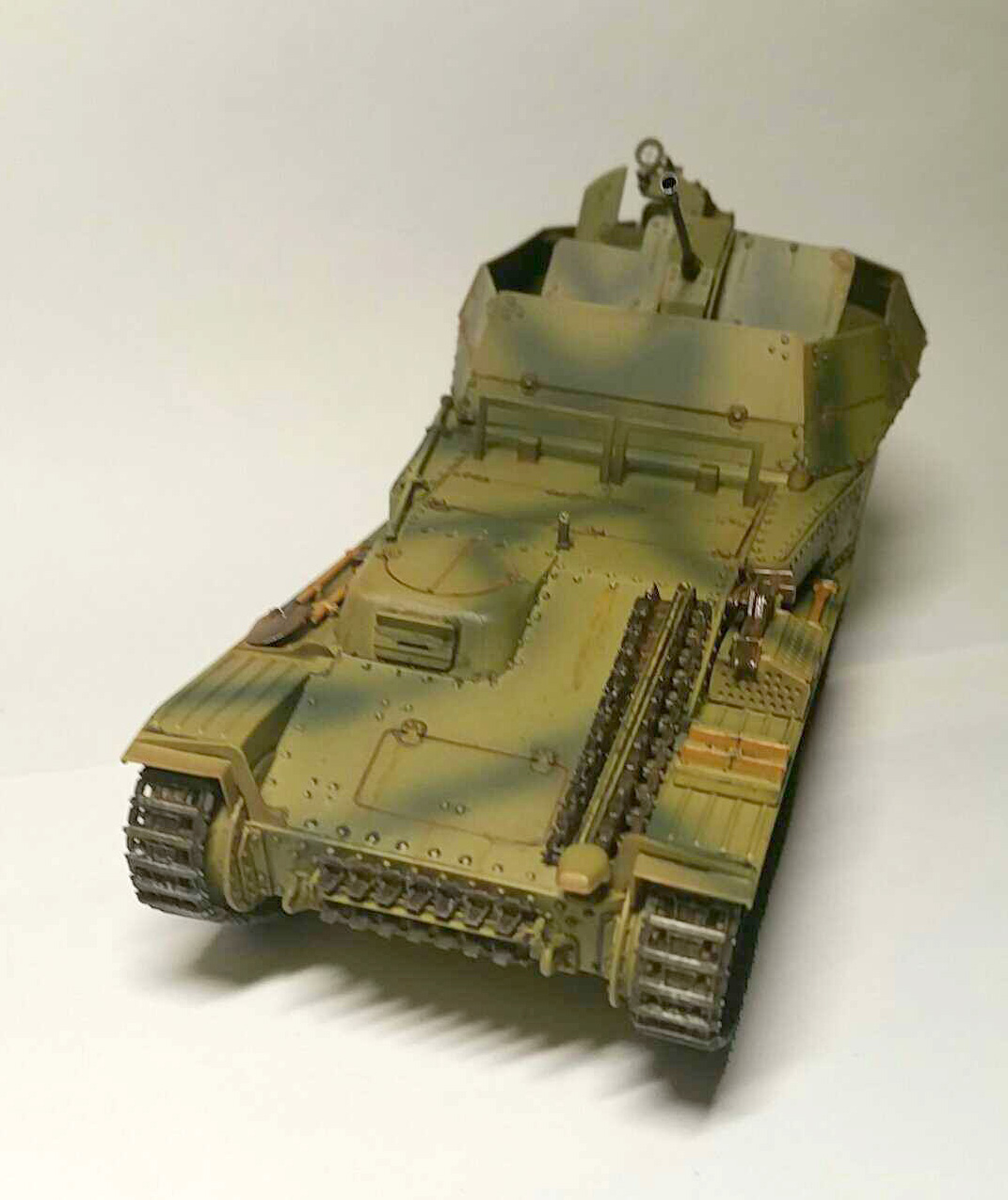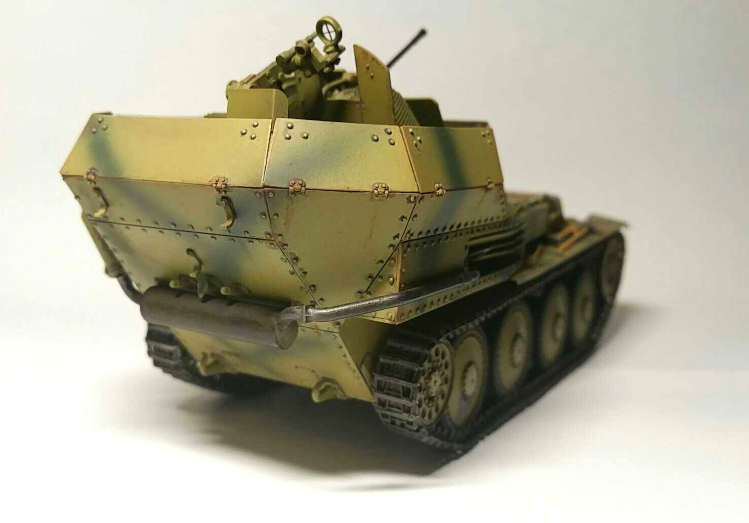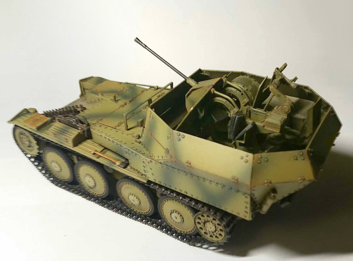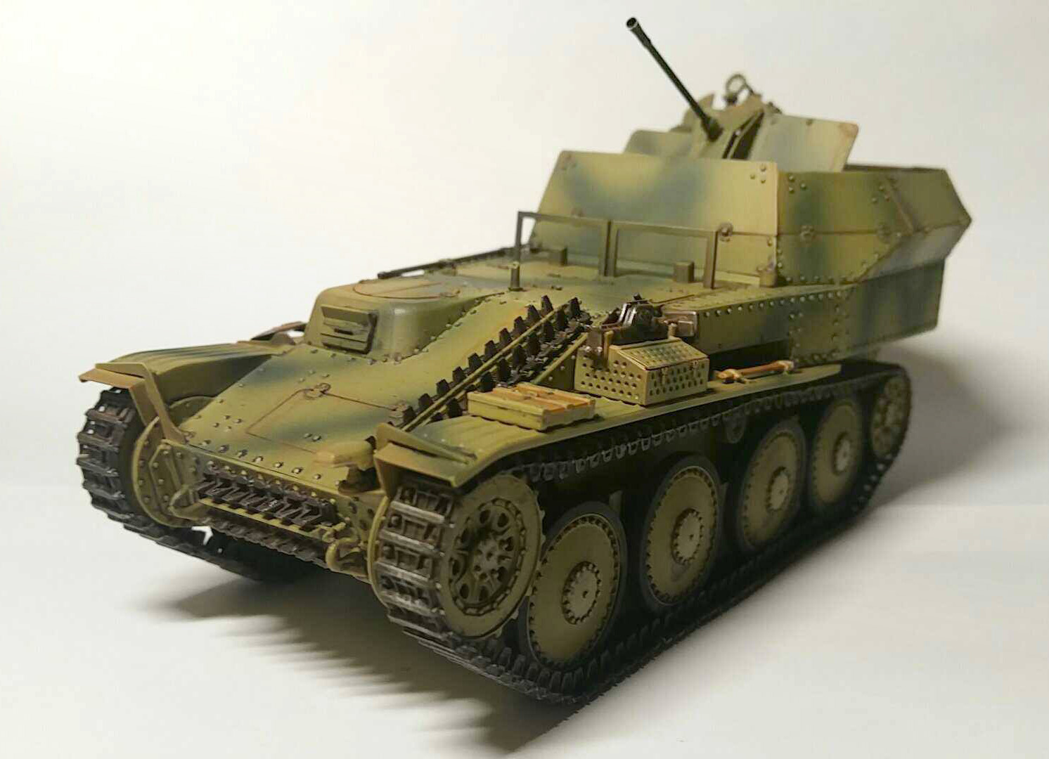Hier gibt es wieder etwas von der grünen Fraktion 😉 unser Mitglied Thomas Weinberg baute dieses Modell. Eine 2cm Flak38 auf Panzer 38(t) von TRISTAR im Maßstab 1:35. Die Farben und Farbpigmente stammen aus dem Sortiment des Herstellers VALLEJO. Die Washes sind von Ammo MIG bzw. verdünnte Ölfarben. Das Geschützrohr ist aus Metall und stammt von RB Model.