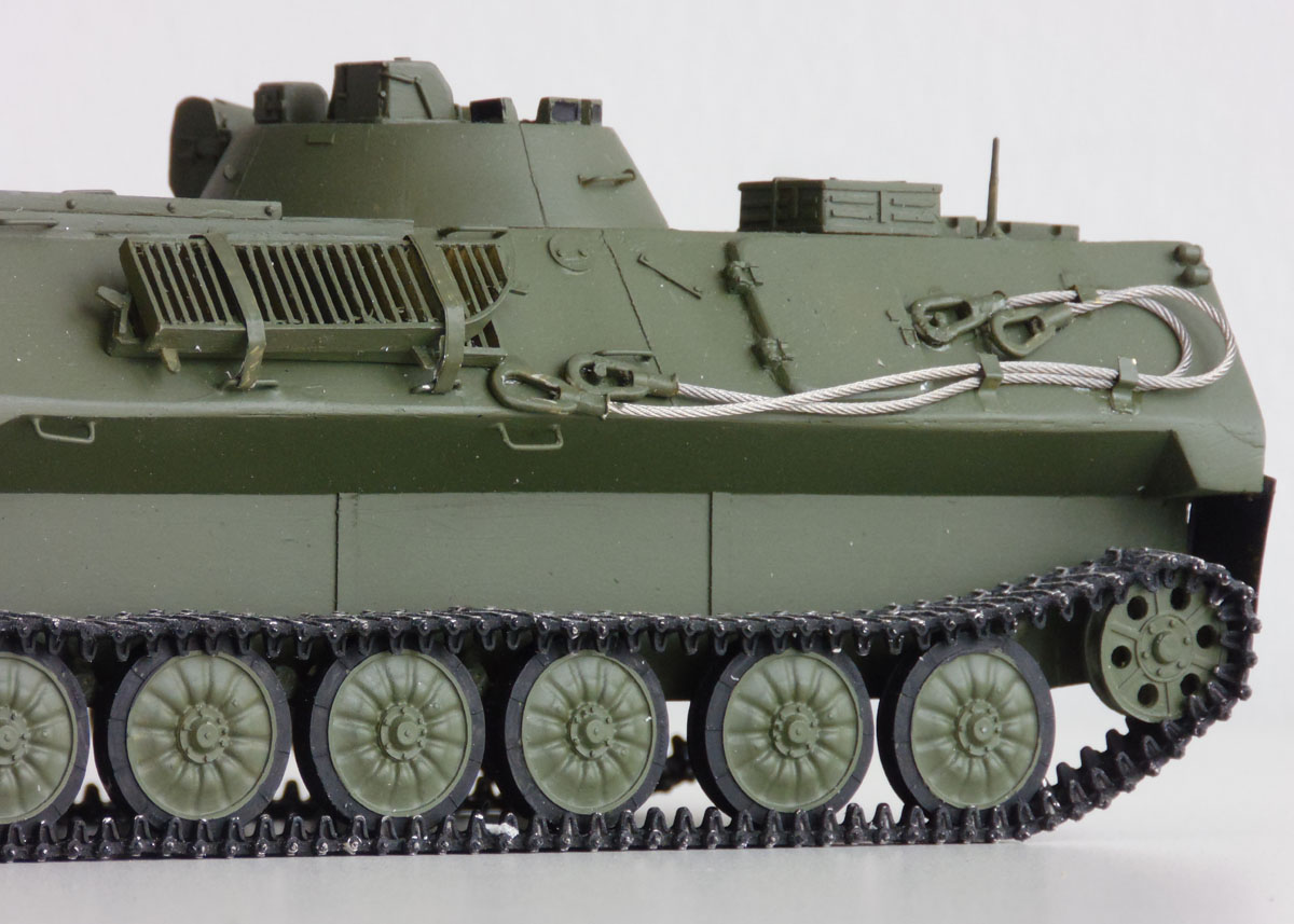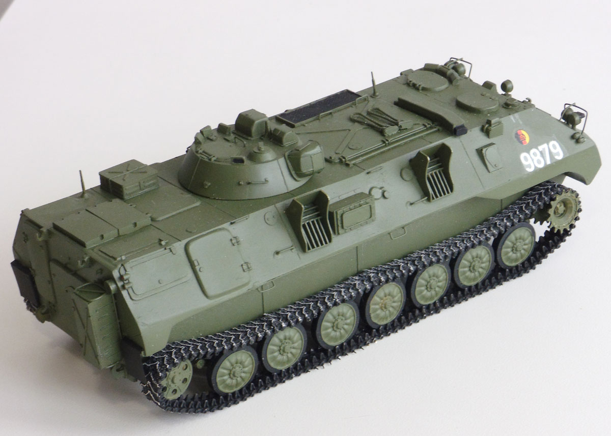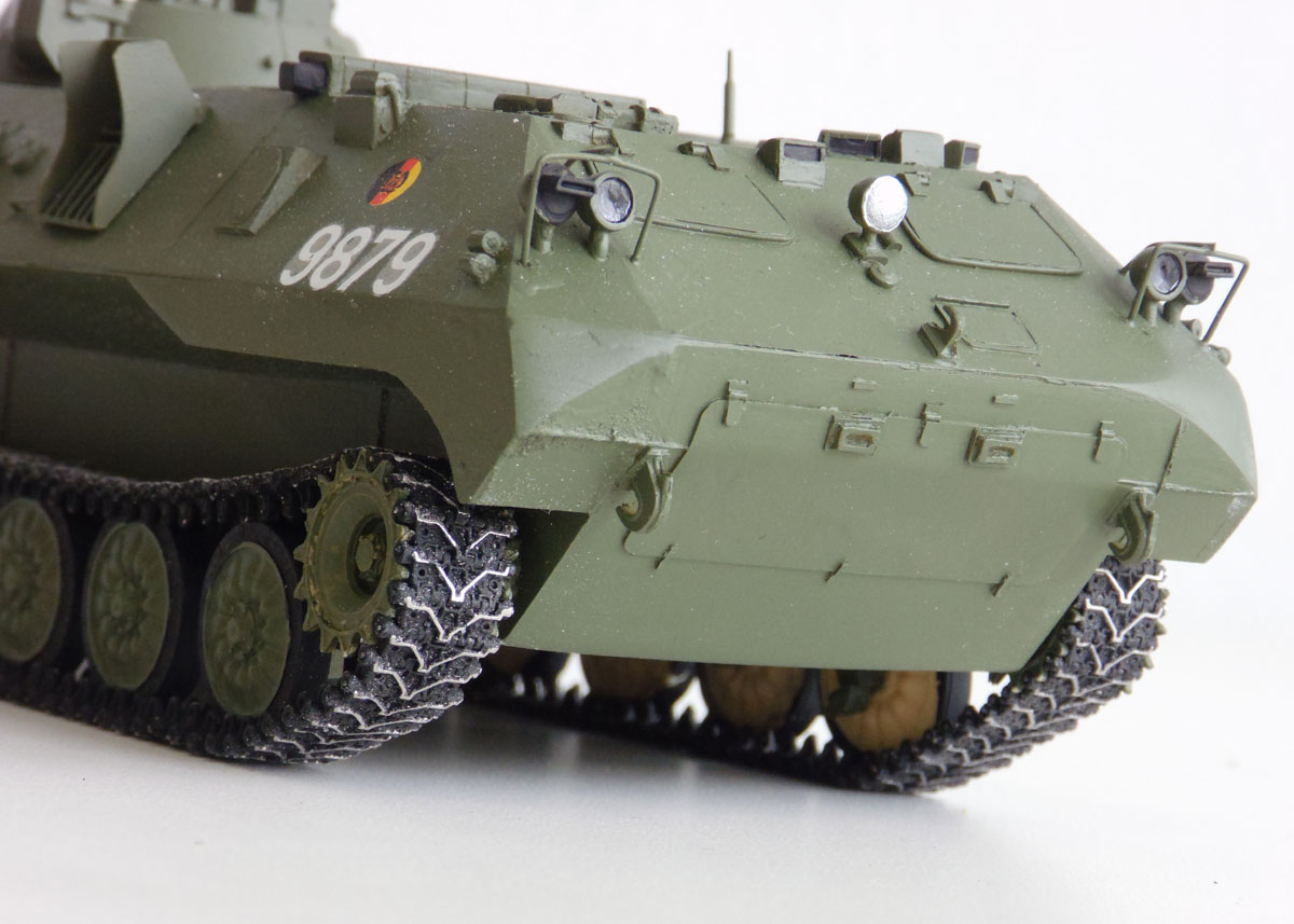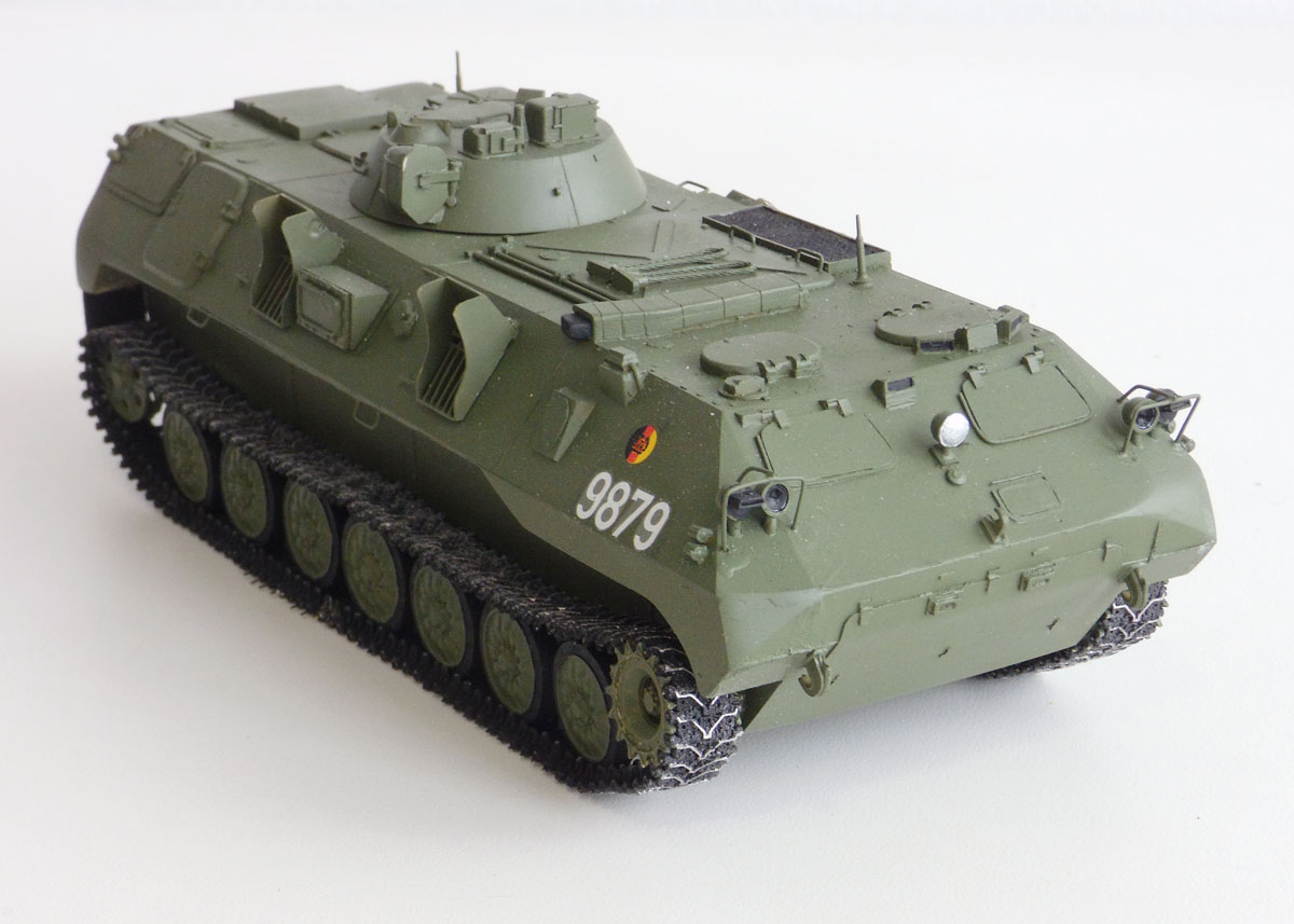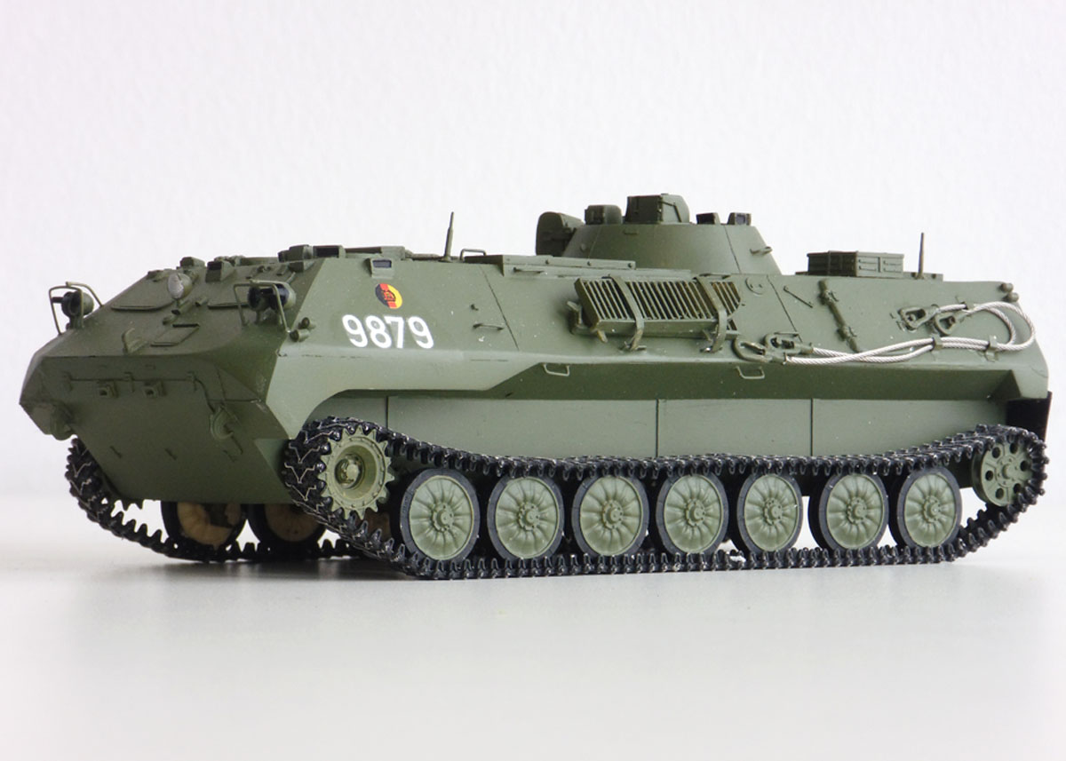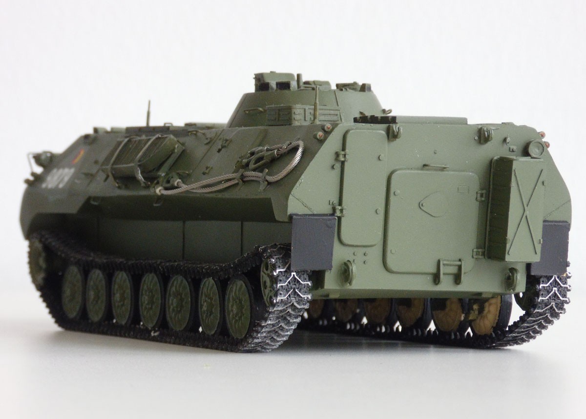 Von SP Design stammt der Resinklotz aus dem Jan Poppe ein Modell entstehen ließ. Der 1V14 ist eine Variante auf Basis des MT-LBu, einem leichten gepanzerten Universaltransporter, der in der ehemaligen Sowjetunion entwickelt wurde. Zum Bau verwendete Jan noch Metallketten von Friulmodell und die NVA Decals spendete die Firma TL-Decals.