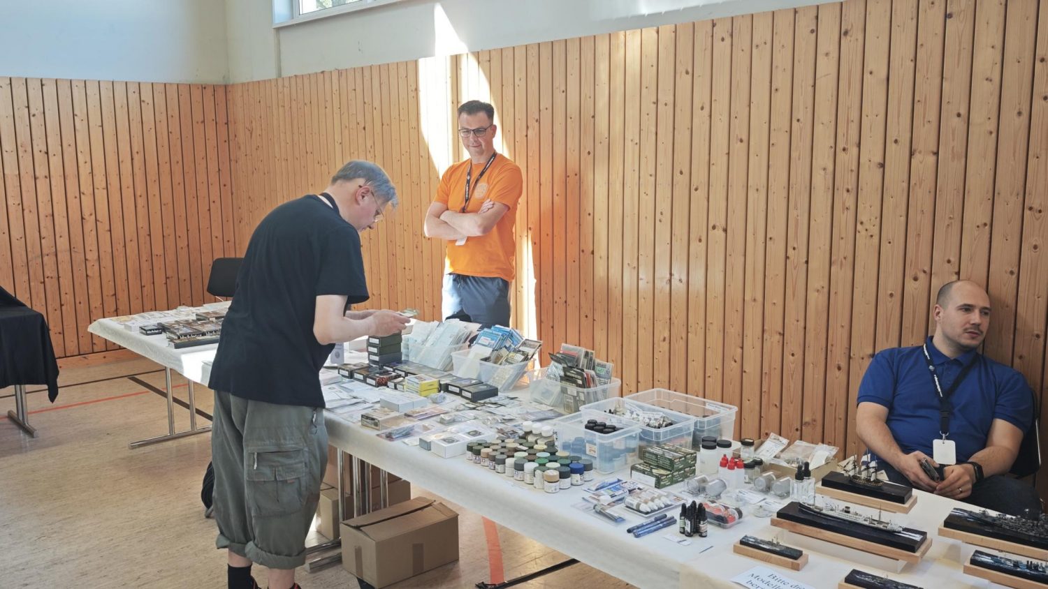 In der Halle traf man dann auf altbekannte Gesichter und was in Waßmannsdorf immer wieder auffällt, auf Modellbauer, die man sonst nicht so unbedingt auf von uns besuchten Ausstellungen antrifft, was natürlich auch für uns etwas Abwechslung bietet. Jörg Waliser und Ralf Theis waren als Händler vor Ort und somit konnte auch der Drang nach neuen Bausätzen oder Airbrushprodukten befriedigt werden.