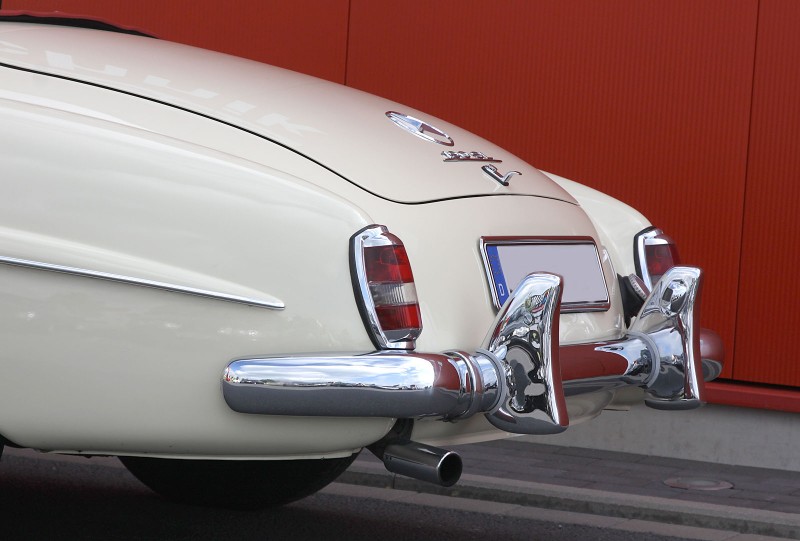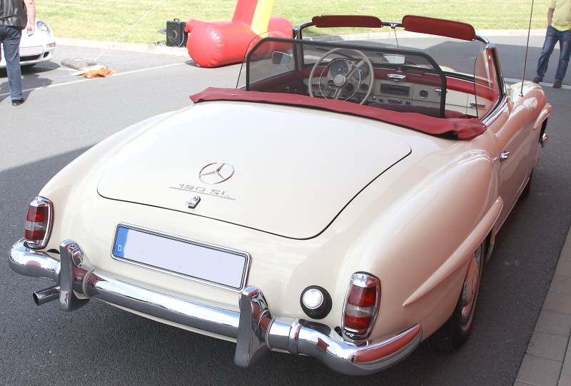 Zuerst habe ich hier ein paar Fotos von einem Mercedes 190 SL Roadster. Revell bietet hiervon einen Bausatz mit der Nummer 00009 im Maßstab 1:25 als limitierte Revell Classics Serie an. Der Modellbausatz besteht aus 88 Teilen.