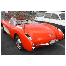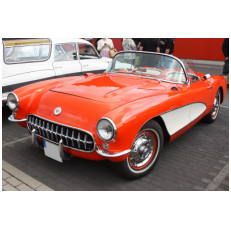 Für die hier gezeigte Corvette aus dem Jahr 1956 gibt es keinen Bausatz des gleichen Modelljahres. Allerdings gab es von 1956 bis 1957 kein Facelifting bei Chevrolet für die Corvette, so dass hier der Modellbausatz der 1957er Corvette Convertible von AMT mit der Kit Nummer AMT1016 im Maßstab 1:25 identisch ist. AMT bietet dieses Kit ähnlich wie Revell als Car Culture Serie an.