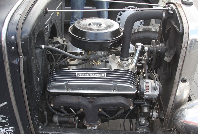 Sehr schön schaut auch dieser Hot Rod auf Basis eines Ford Model A Coupe aus. Der Motor ist von Offenhauser mit Edelbrock Teilen. Offenhauser ist eher ein Hersteller von Rennmotoren in den USA, aber auch sehr schick in einem Hot Rod anzusehen und zu hören.
